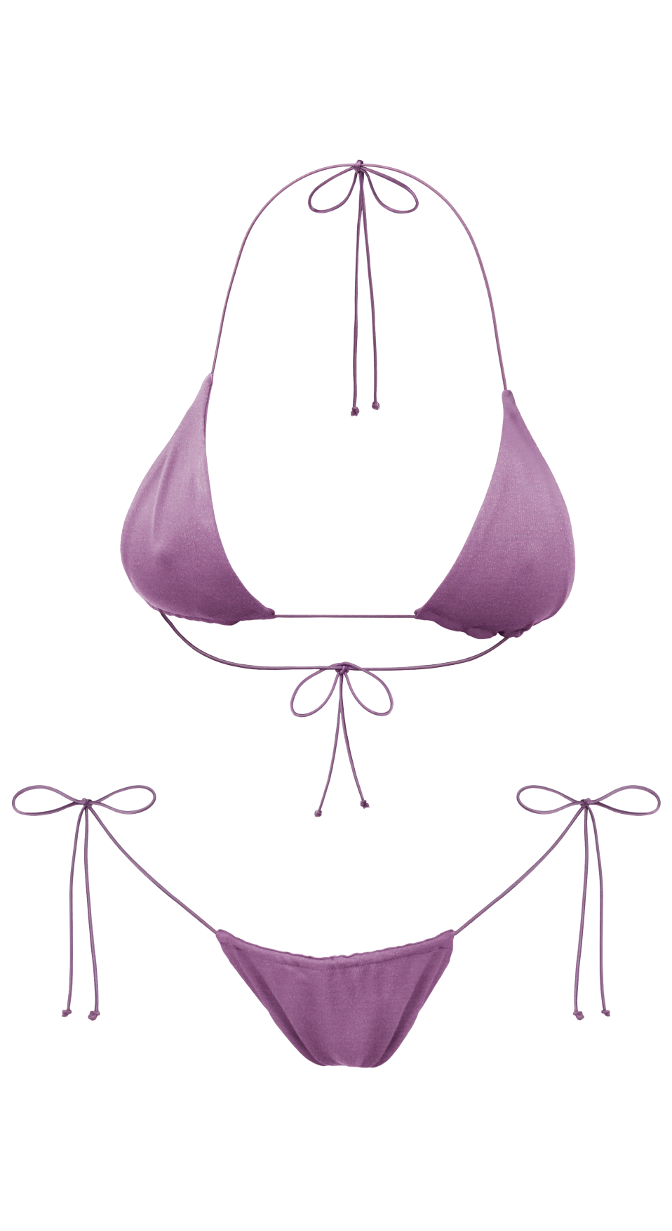 Bikini Lilia Mauve is the ultimate precision cut bikini for those who know that less is truly more. The classic triangle top and adjustable string-tie bottoms offer a customizable fit, highlighting your natural curves with ease. Designed with a structured fabric, sultry mauve shade, this bikini is the perfect blend of sophistication and sensuality. Whether basking in the sun or making waves at the beach, Bikini Lilia Mauve is your go-to for effortless allure.